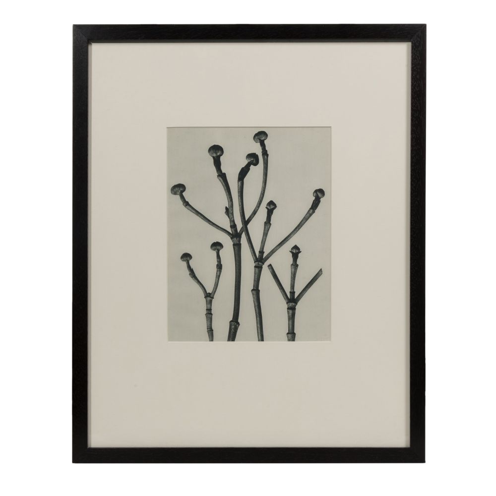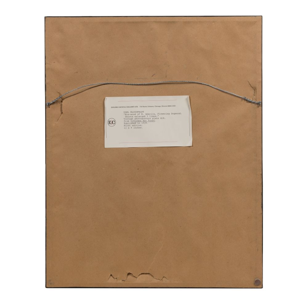 Plate #18 from the book “Urformen der Kunst” self-published by Blossfeldt in 1928, the full translated title being “Boxwood of North America, Flowering Dogwood Shoots enlarged 3 Times”, matted behind acrylic in a painted wood frame having Ehlers Caudill Gallery, Chicago label verso