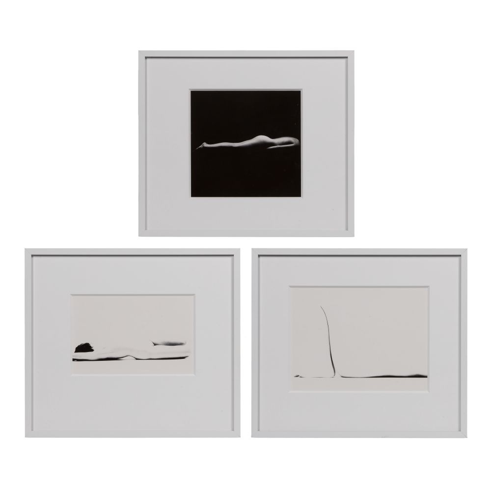 (3) items, undated and unsigned, abstractions of the female form, matted behind glass in uniform painted metal frames