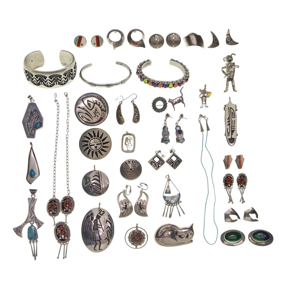 LOT #285 - Native American Signed and Pictographed Sterling Silver Jewelry Assortment