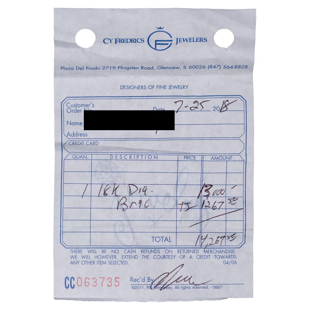 Tank style link having a center row of diamond accented links, in Cy Fredrics presentation box having papers (marked “18k”)