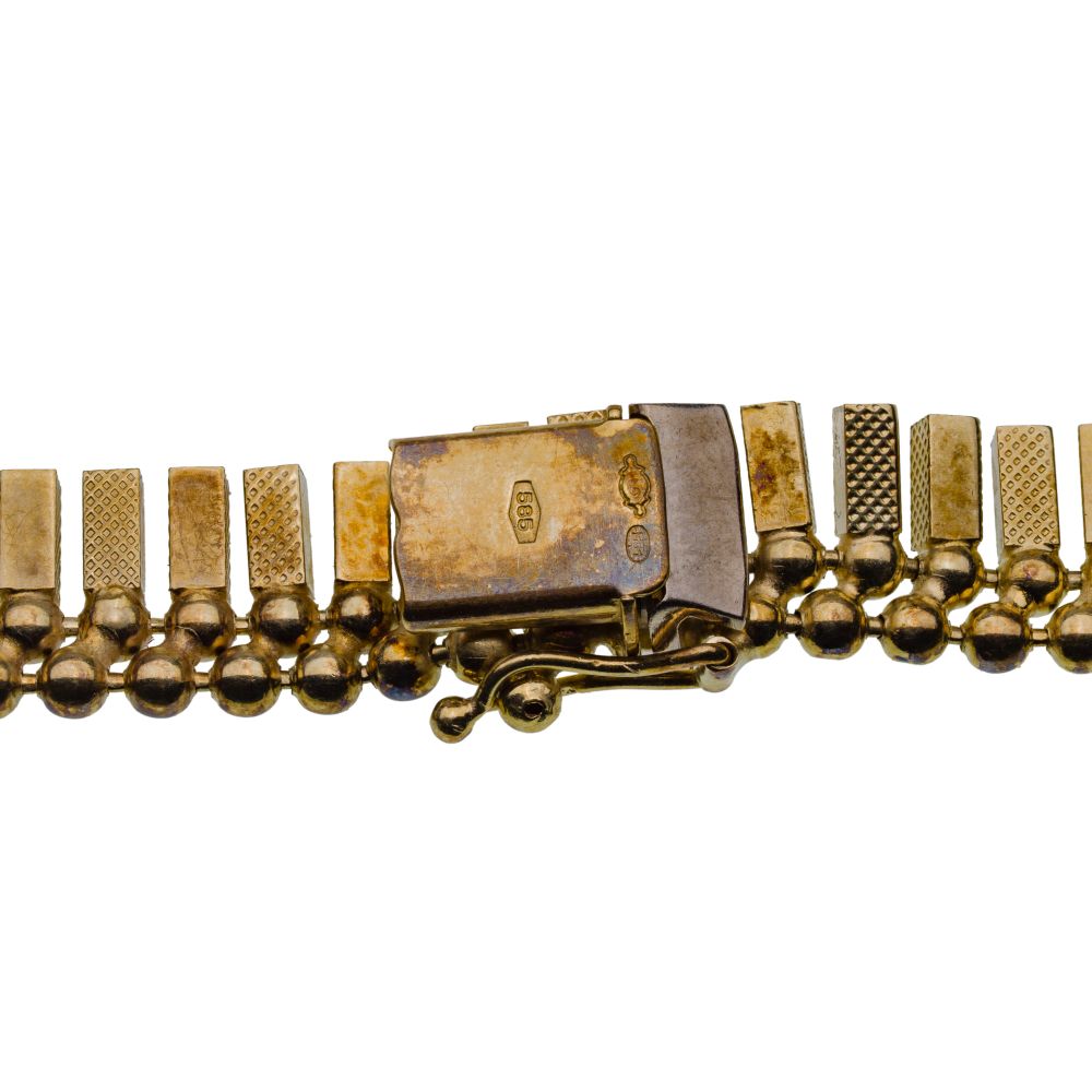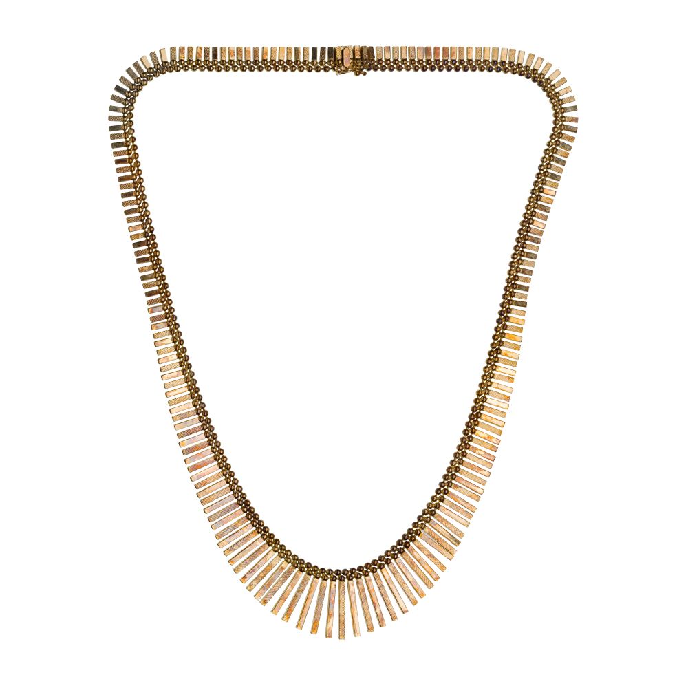 A graduated fringe necklace tapering from 0.875 down to 0.25 of an inch (marked “585”)