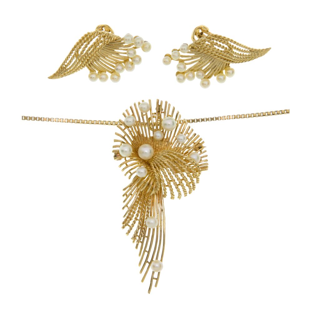 LOT #239 - 14k Yellow Gold and Pearl Jewelry Suite