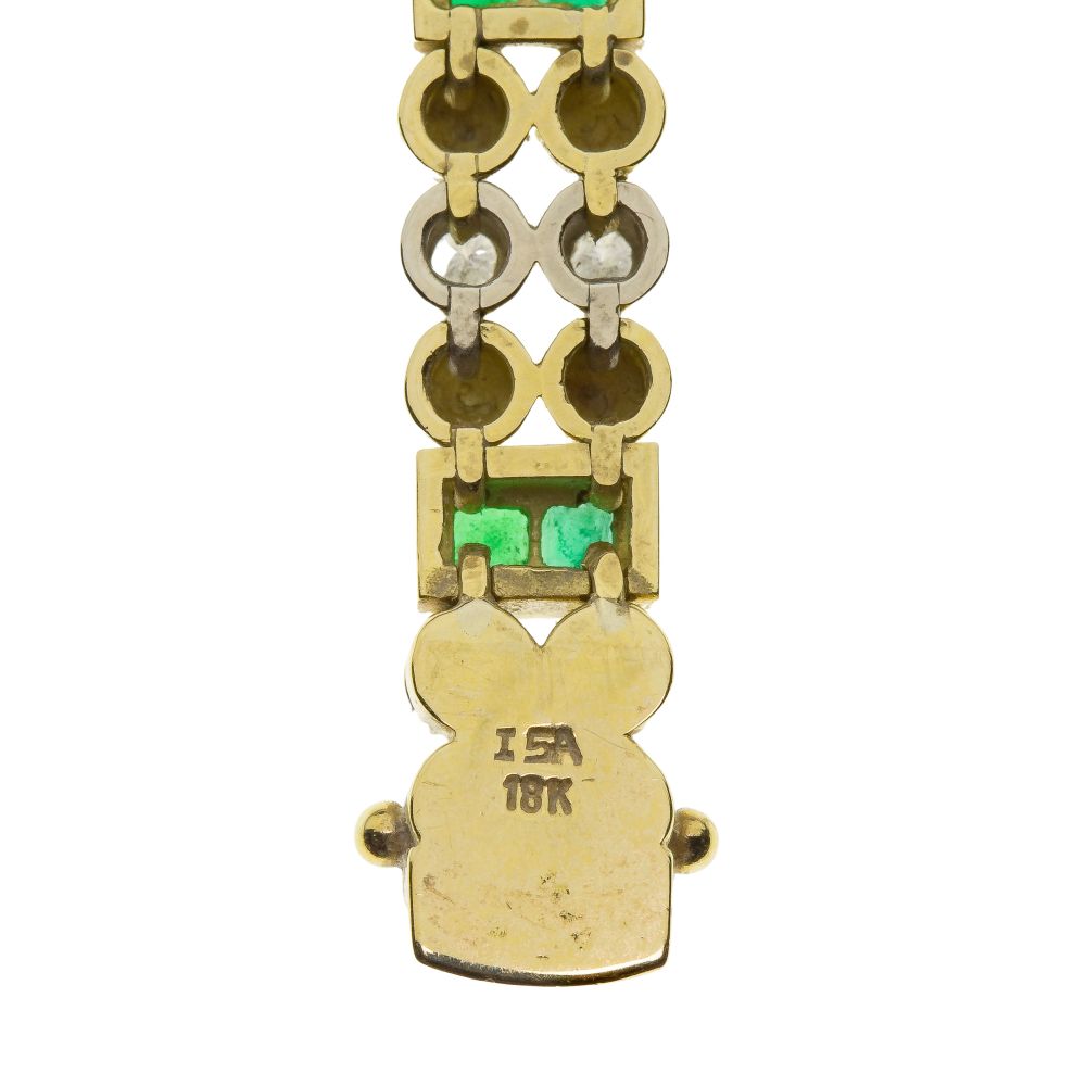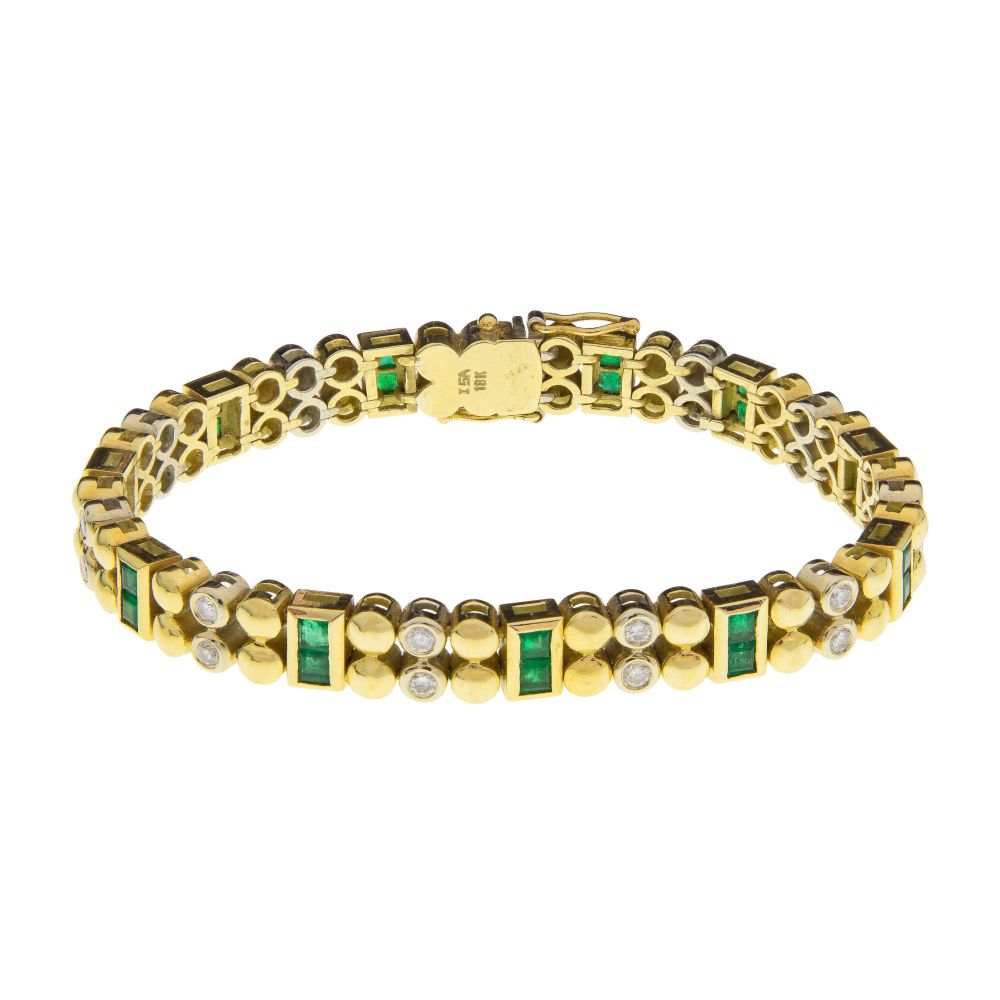LOT #216 - 18k Yellow Gold, Emerald and Diamond Bracelet