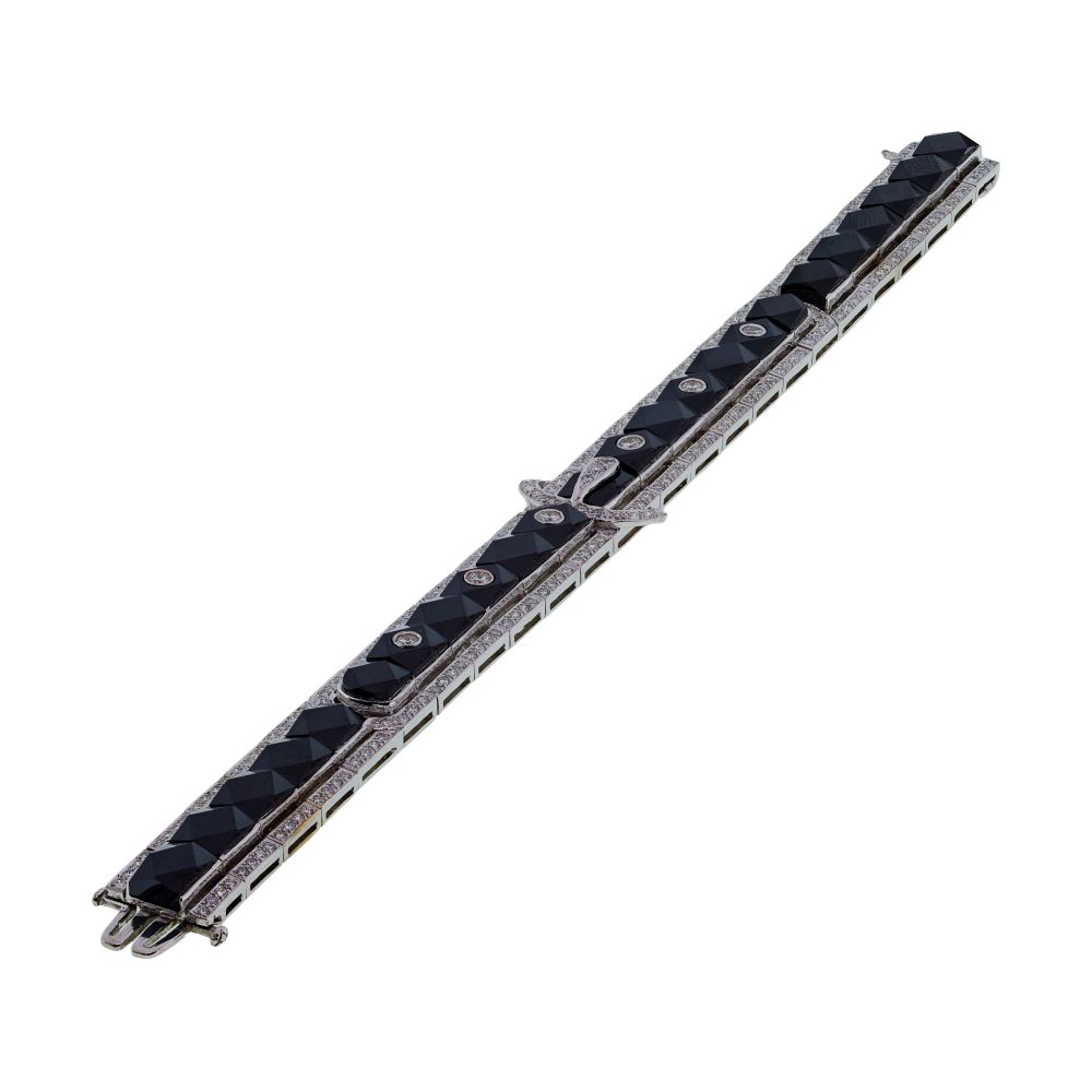 Art Deco Style 18k White Gold, Onyx and Diamond Bracelet