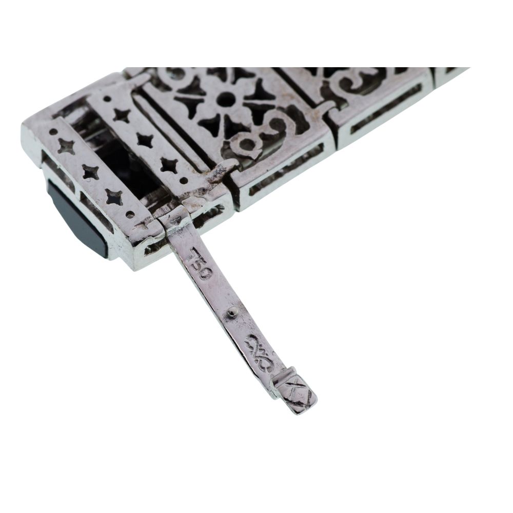 LOT #212 - Art Deco Style 18k White Gold, Onyx and Diamond Bracelet