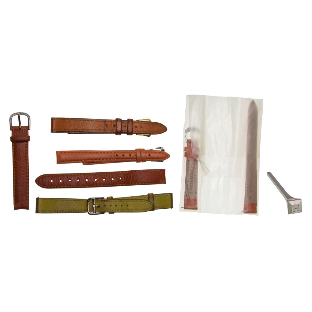 (2) total items including a wristwatch having mother-of-pearl dial, stylized Arabic indexes, quartz movement, leather band (case marked “750”); together with a wristwatch having a stainless steel case, both having original boxes and extras leather bands