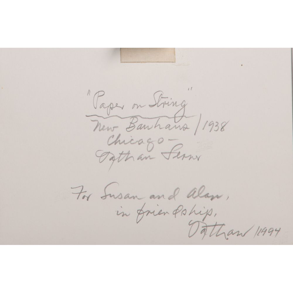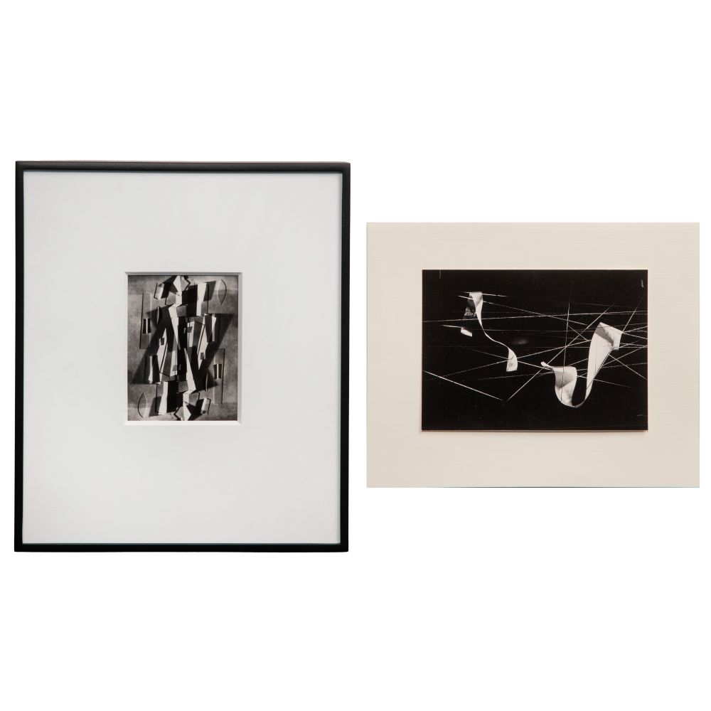 (2) items including “Light Forms Using Folded Paper” matted behind glass in a metal frame and “Paper on String” 4.625 x 6.625-inch image hinged to backing paper, unframed