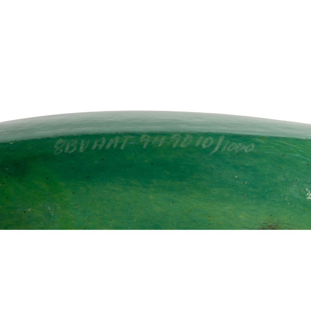 (5) items, all sand cast boat forms of various sizes, colors and decorative techniques, (3) having wood stands, all but silver leaf exterior having engraved marks underside indicating editions of 1000, some retaining Kosta Boda labels