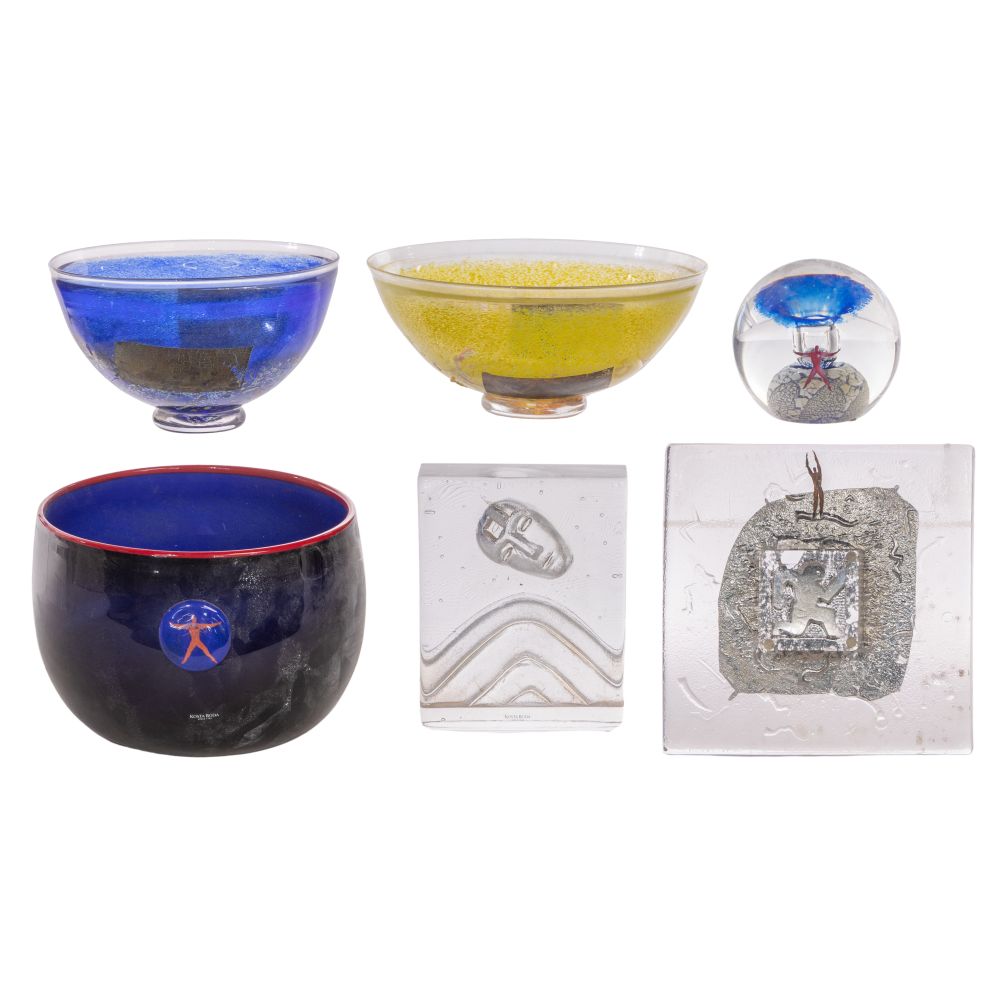 (6) items including (3) bowls, (2) sculptures and a paperweight, all having engraved signature and edition numbers to the underside
