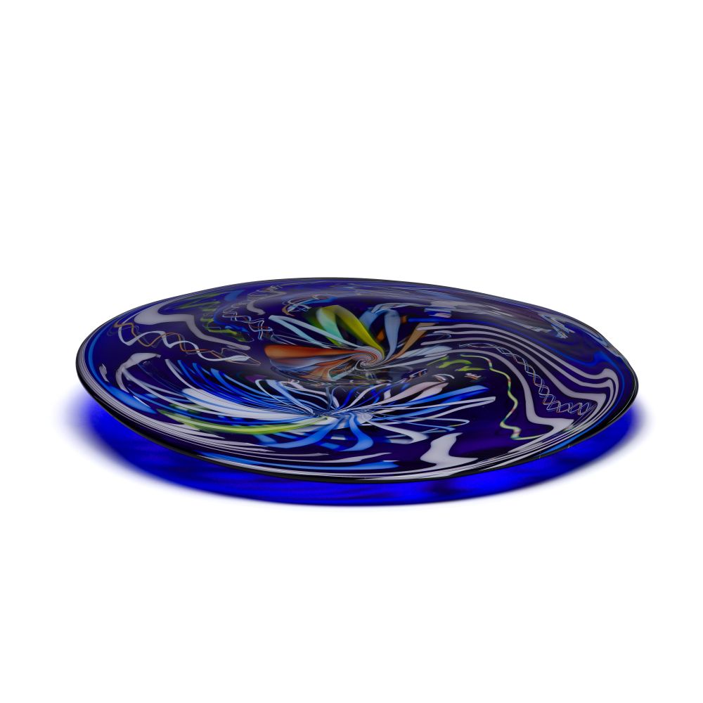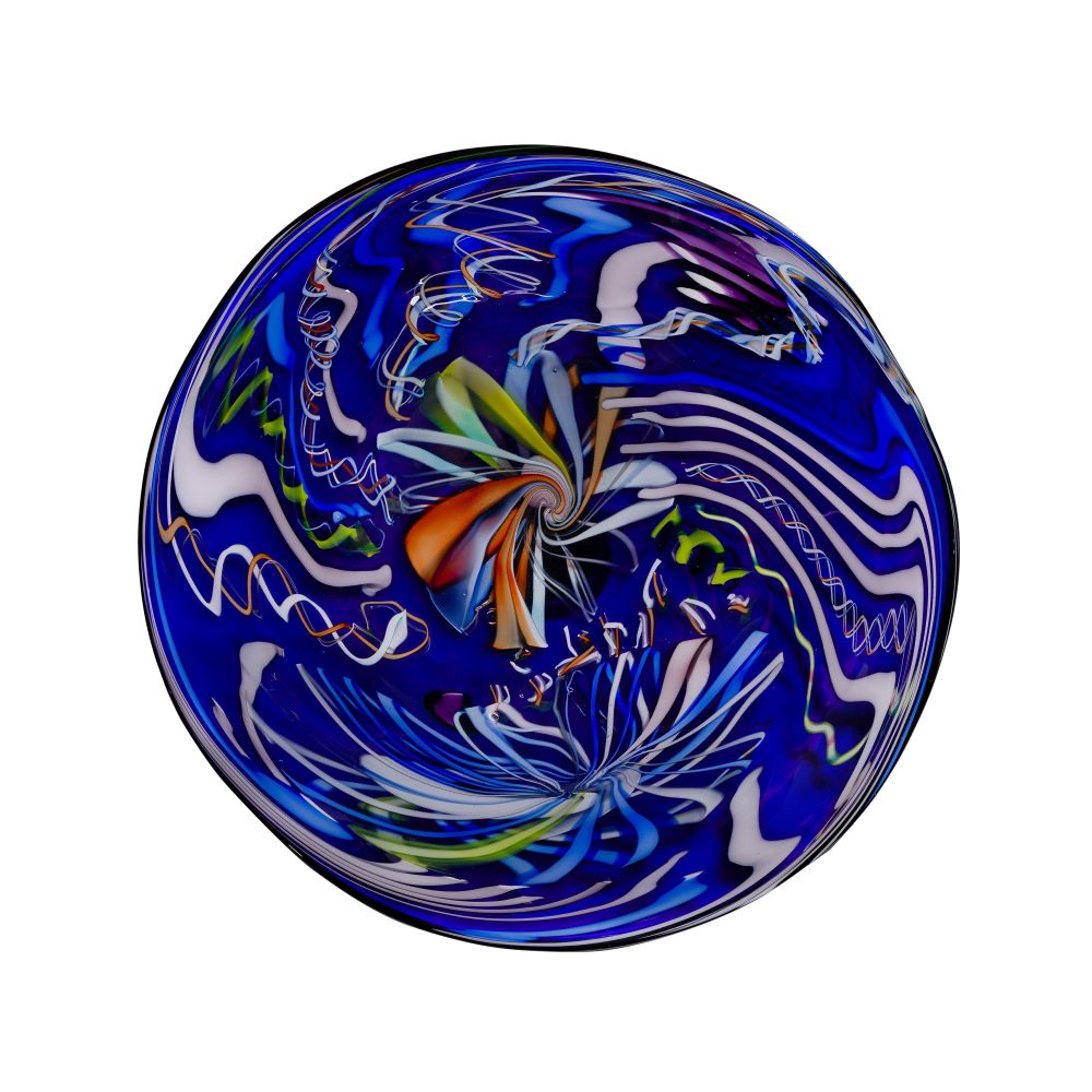 2002, engraved signature to the underside, having a blue ground with various other colors and lines throughout