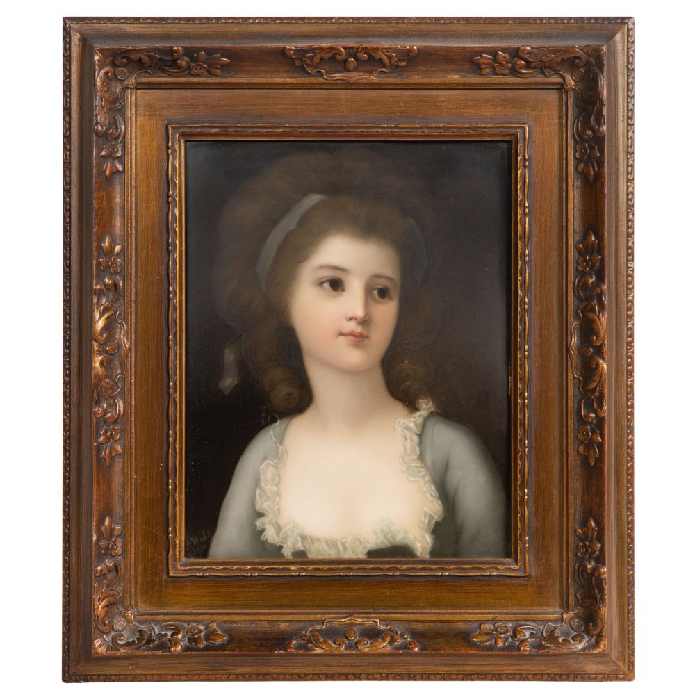 1884, a portrait of Countess Zofia Potocka after Anton Graff, faintly dated and illegibly signed lower left, retaining Marshall Field & Co. label verso of painted wood frame