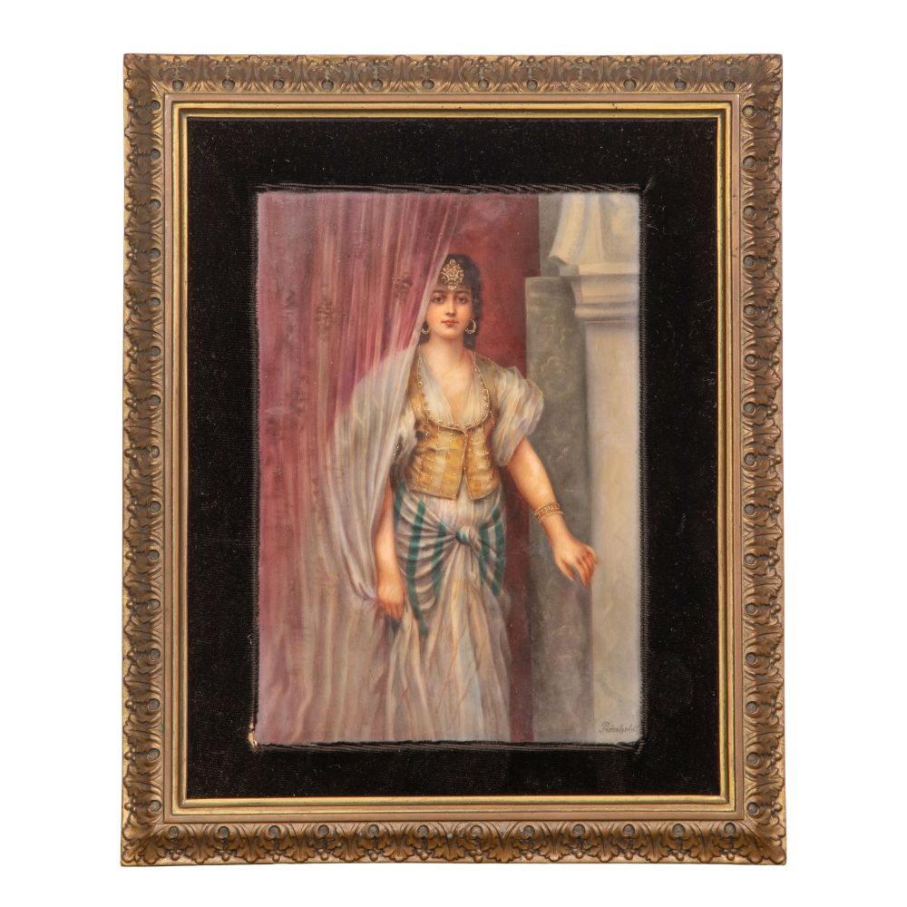 Undated, “Soudja Sari” after Gaston Casimir Saint-Pierre, signed “Proscholett” lower right, in a black velvet lined brass frame marked “Made by Marshall Field & Co.”