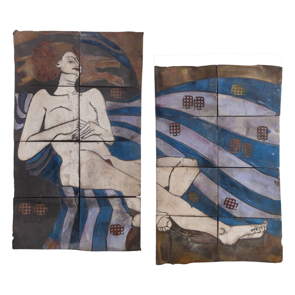 Doug DeLind (American, b.1947) "Nude Blue" Raku Pottery Diptych