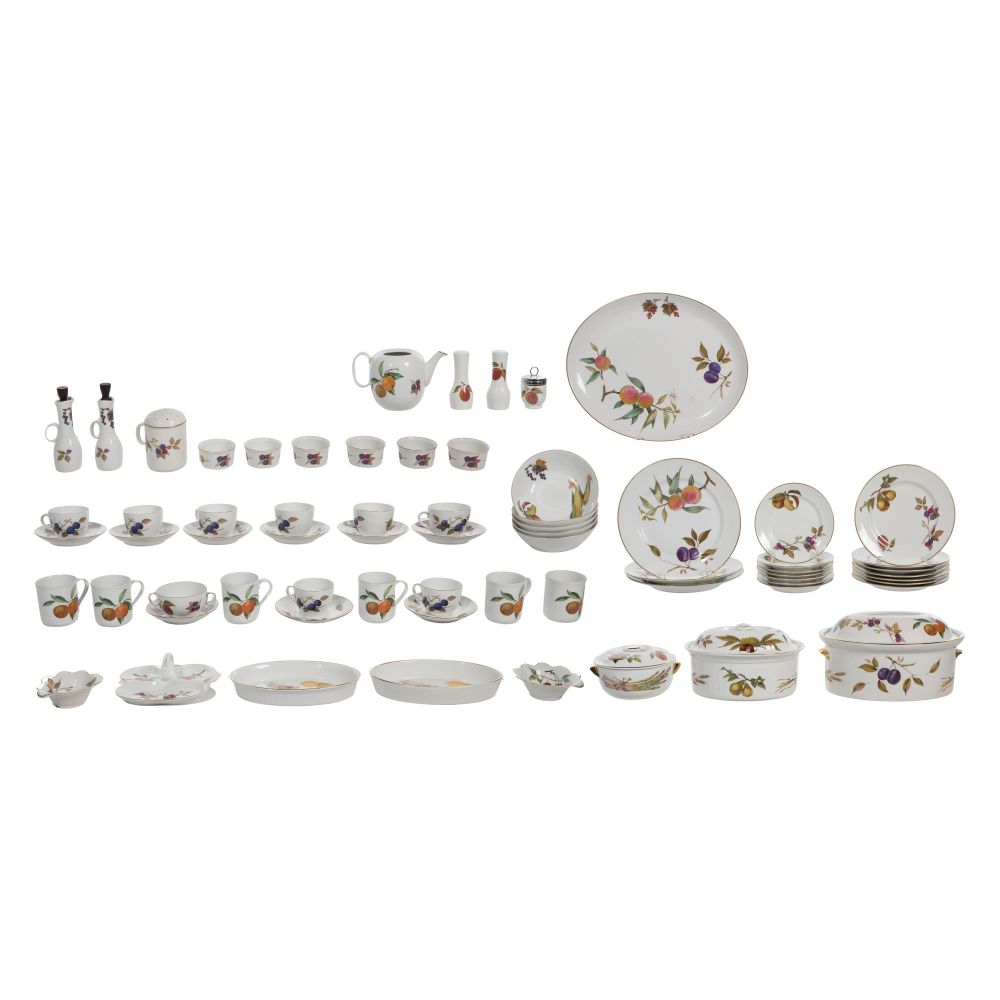 (69) items including (4) 10 1/4-inch dinner plates, (8) 8 3/8-inch salad plates, (8) 6 1/2-inch bread and butter plates, (8) 2 1/2-inch teacups, (6) 3 5/8-inch mugs, (8) 6-inch tea saucers, (6) 6 1/2-inch soup saucers, (6) 6 7/8-inch soup bowls, (6) 2 1/4-inch double-handled soup bowls, (1) 10-inch round bowl, (1) 10 3/4-inch oval bowl, (1) 10 3/4-inch vegetable bowl, (1) 8-inch covered bowl, (1) 15 1/4-inch oval platter, (1) 11 1/2-inch tureen, (1) 5-inch teapot, (1) 5-inch salt shaker and (1) 5-inch pepper shaker
