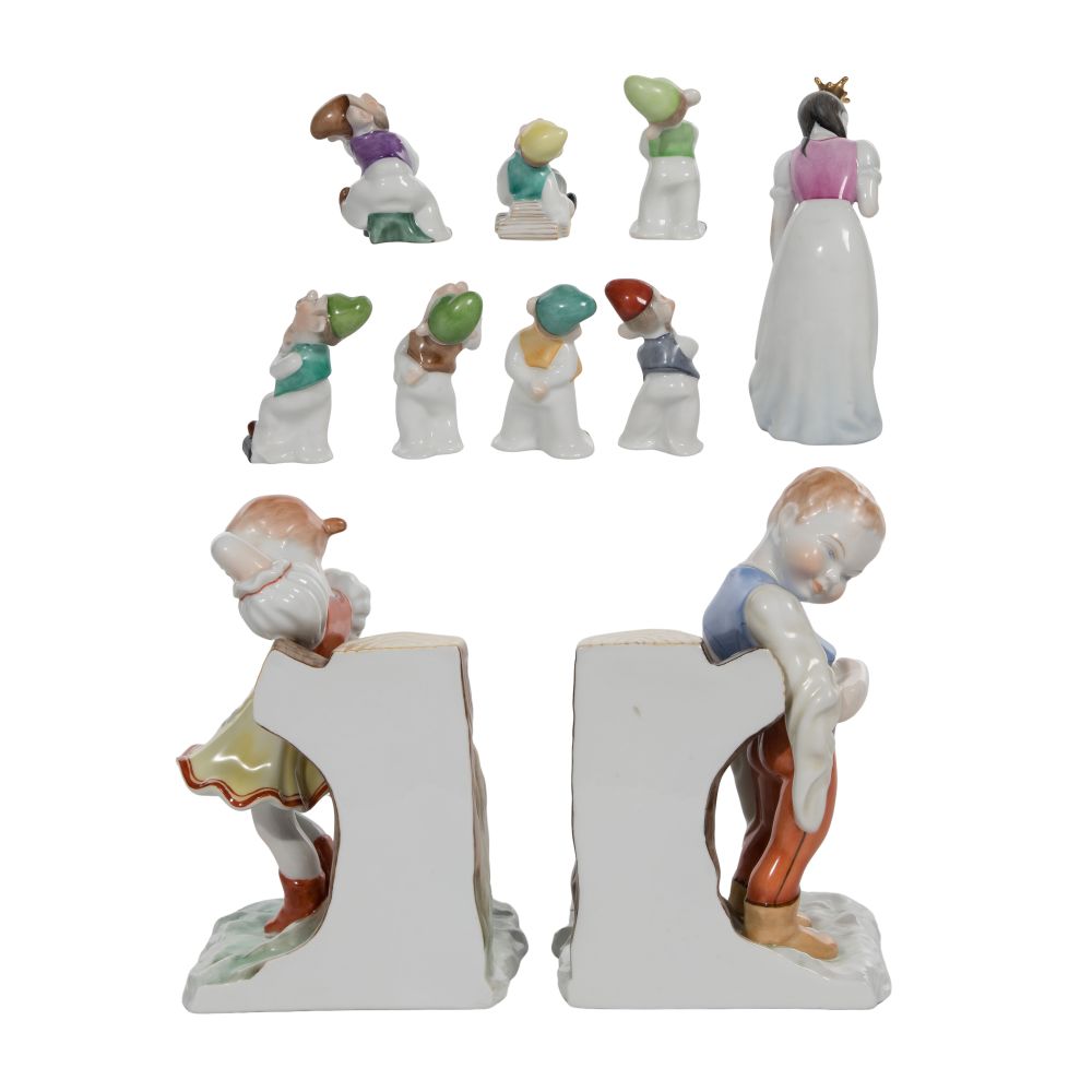 (10) items including Snow White and the Seven Dwarfs, a #5384 bookend and a #5485 bookend, all having maker mark to the underside