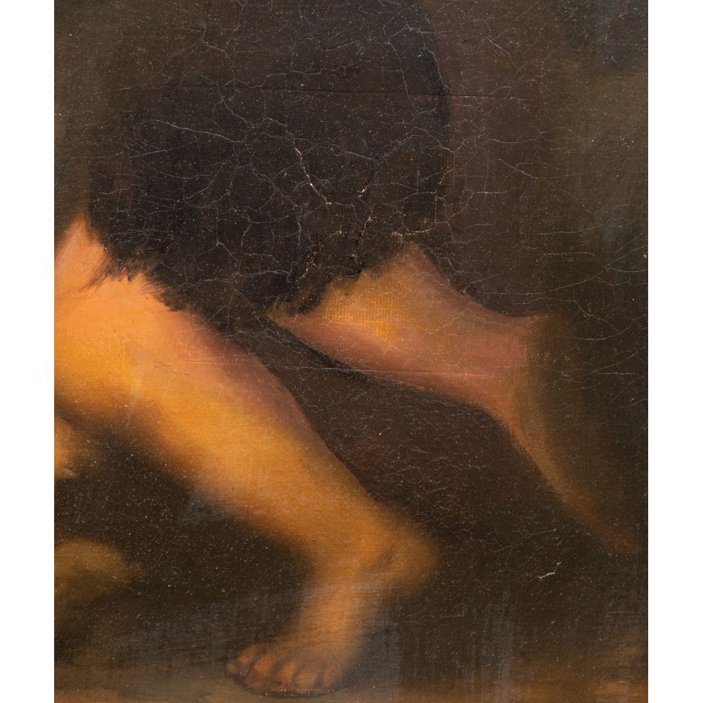 Condition: cut down and relined, craquelure overall, a repaired tear above Jesus' flexed knee, inpainting, wear to corners, frame having moderate wear and chips, cut down and relined, craquelure overall, a repaired tear above Jesus' flexed knee, inpainting, wear to corners, frame having moderate wear and chips