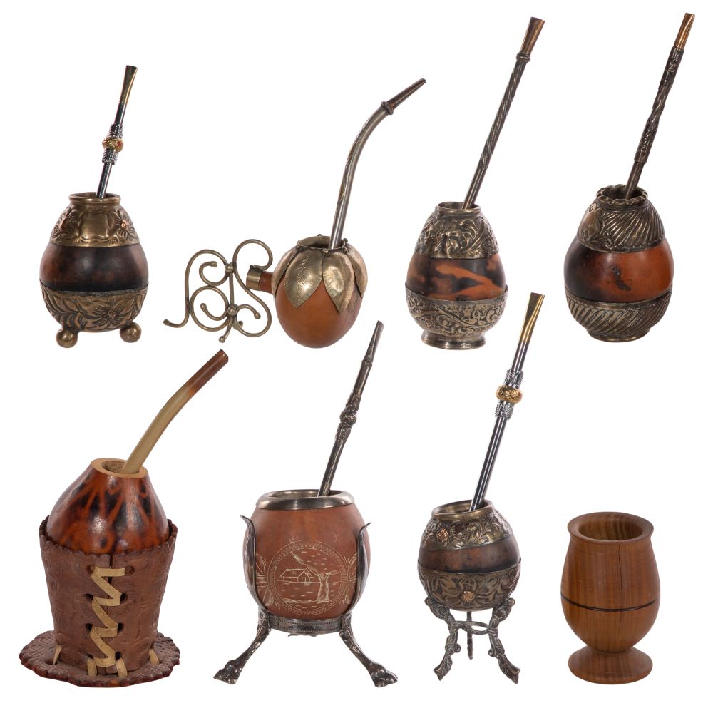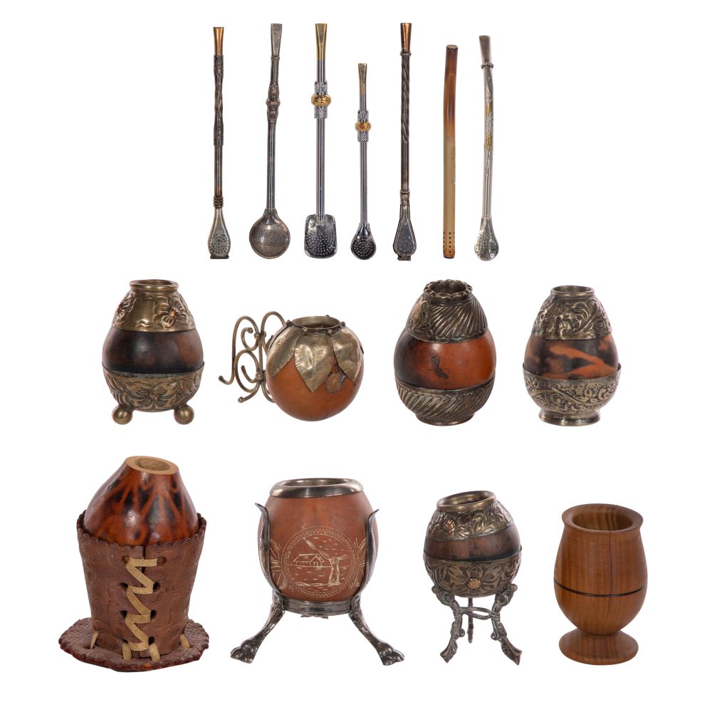 Condition: overall light wear consistent with normal use, some having minor chips, areas of wear, scratches, tarnish, verdigris, wood cup having crack, overall light wear consistent with normal use, some having minor chips, areas of wear, scratches, tarnish, verdigris, wood cup having crack