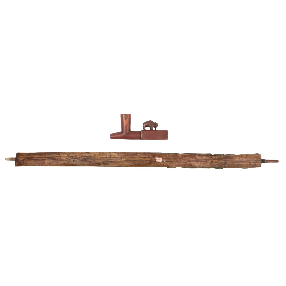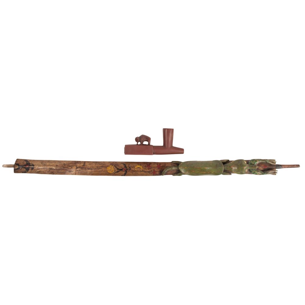 LOT #647 - Native American Plains Indian Catlinite Pipe and Effigy Stem