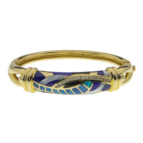 220 Asch Grossbardt 14k Yellow Gold, Gemstone and Diamond Hinged Bangle Bracelet ESTIMATE: $1,500 – 2,000