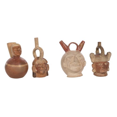 Pre-Columbian Peruvian Moche Style Painted Pottery Bottles