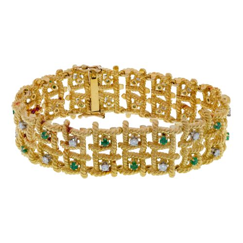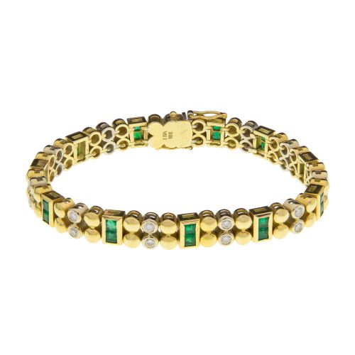 18k Yellow Gold, Emerald and Diamond Bracelet