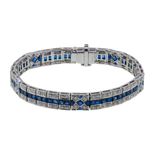Art Deco Style 18k White Gold, Sapphire and Diamond Bracelet