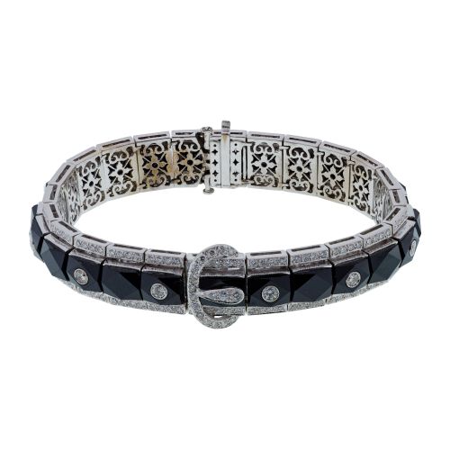 Art Deco Style 18k White Gold, Onyx and Diamond Bracelet