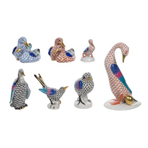 Herend Fishnet Porcelain Bird Figurine Assortment