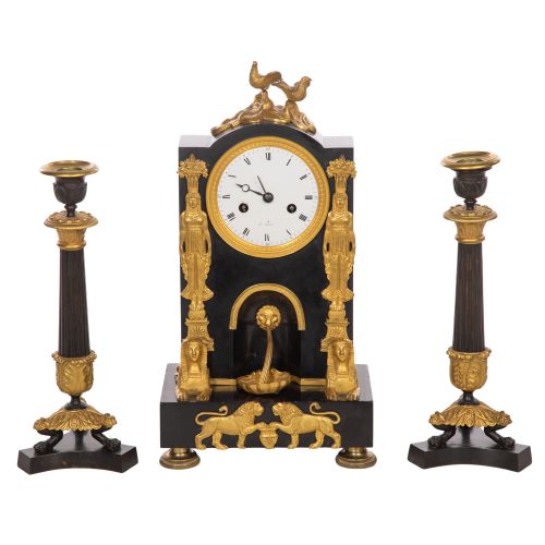 French Mantel Clock and Garniture Set