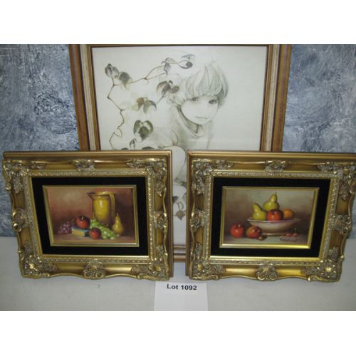 Two Fruit Still Life Paintings w Another