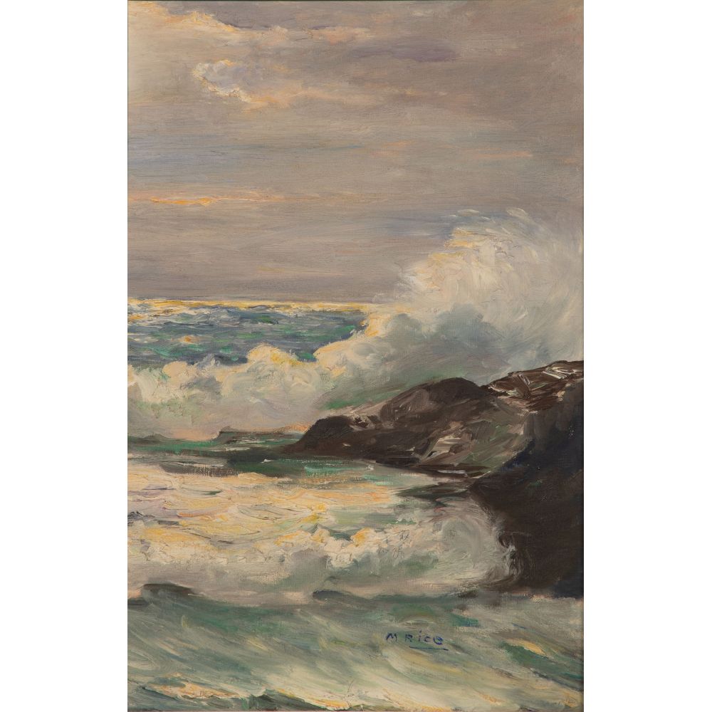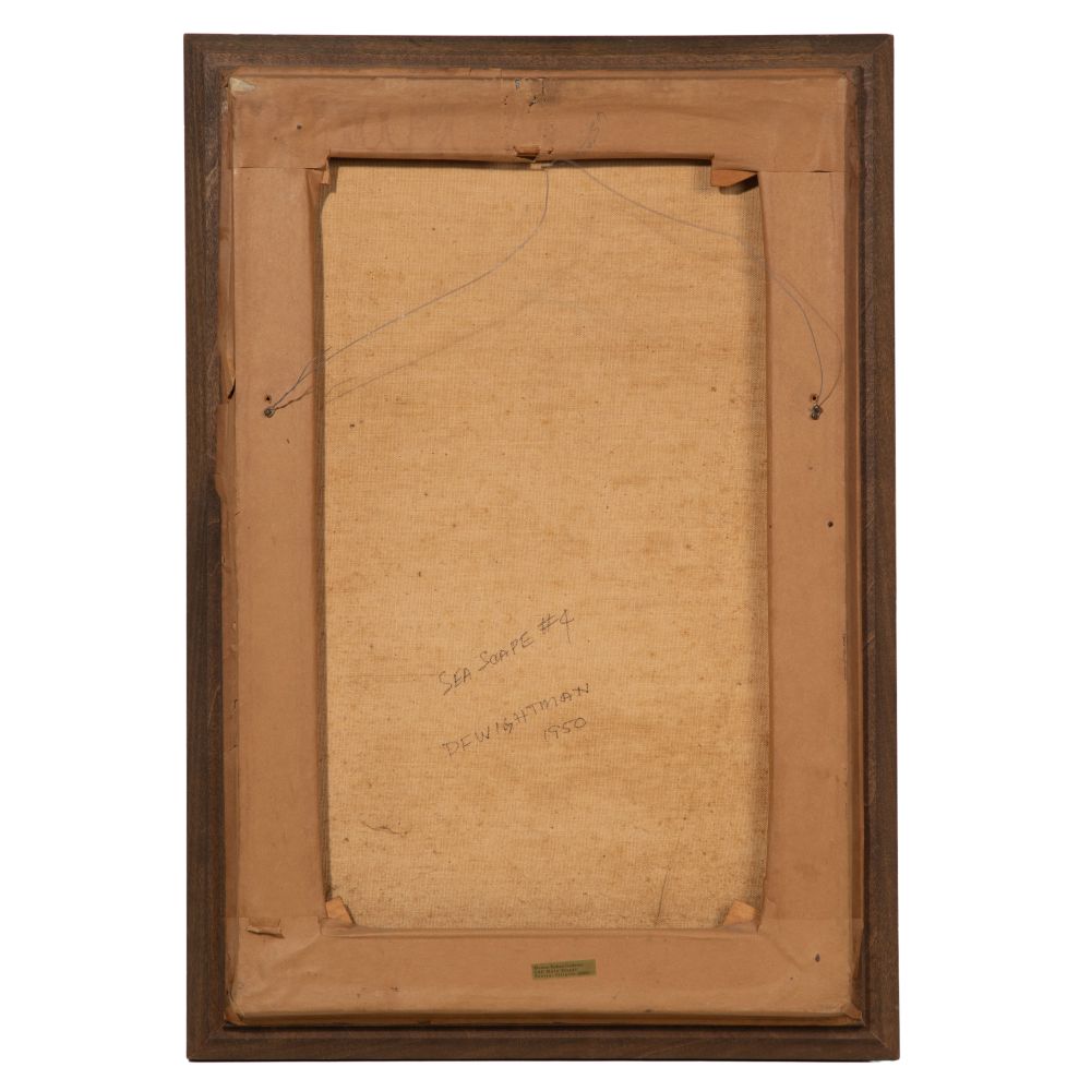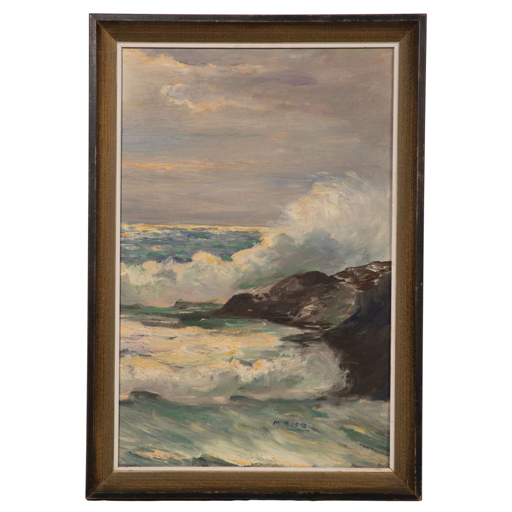 Undated, signed “M. Rice”, depicting a seascape, marked “Sea Scape #4 D F Wightman 1950” verso, Eleanor Burkart Galleries label verso, in a wood frame
