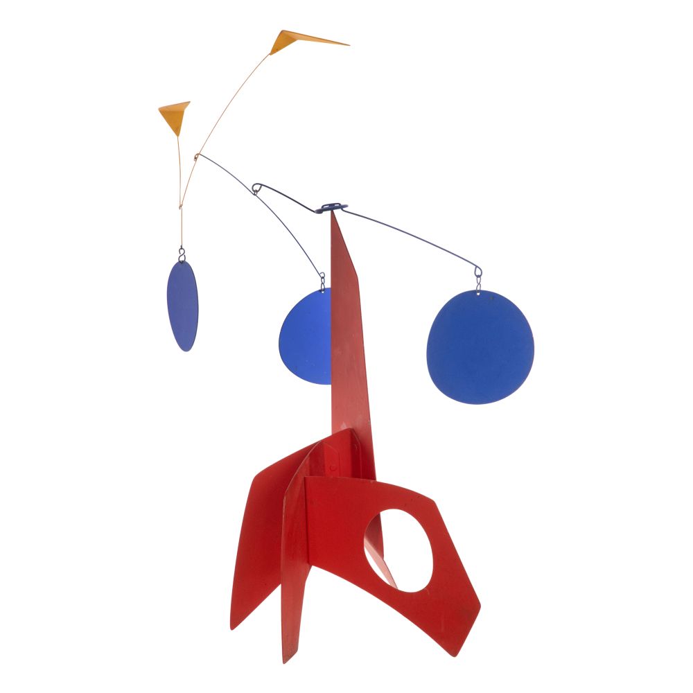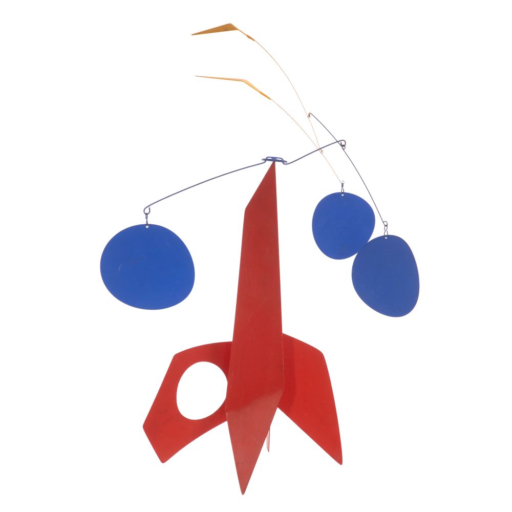 Undated, initial signed, matte painted metal stabile / mobile sculpture, in the style of Alexander Calder