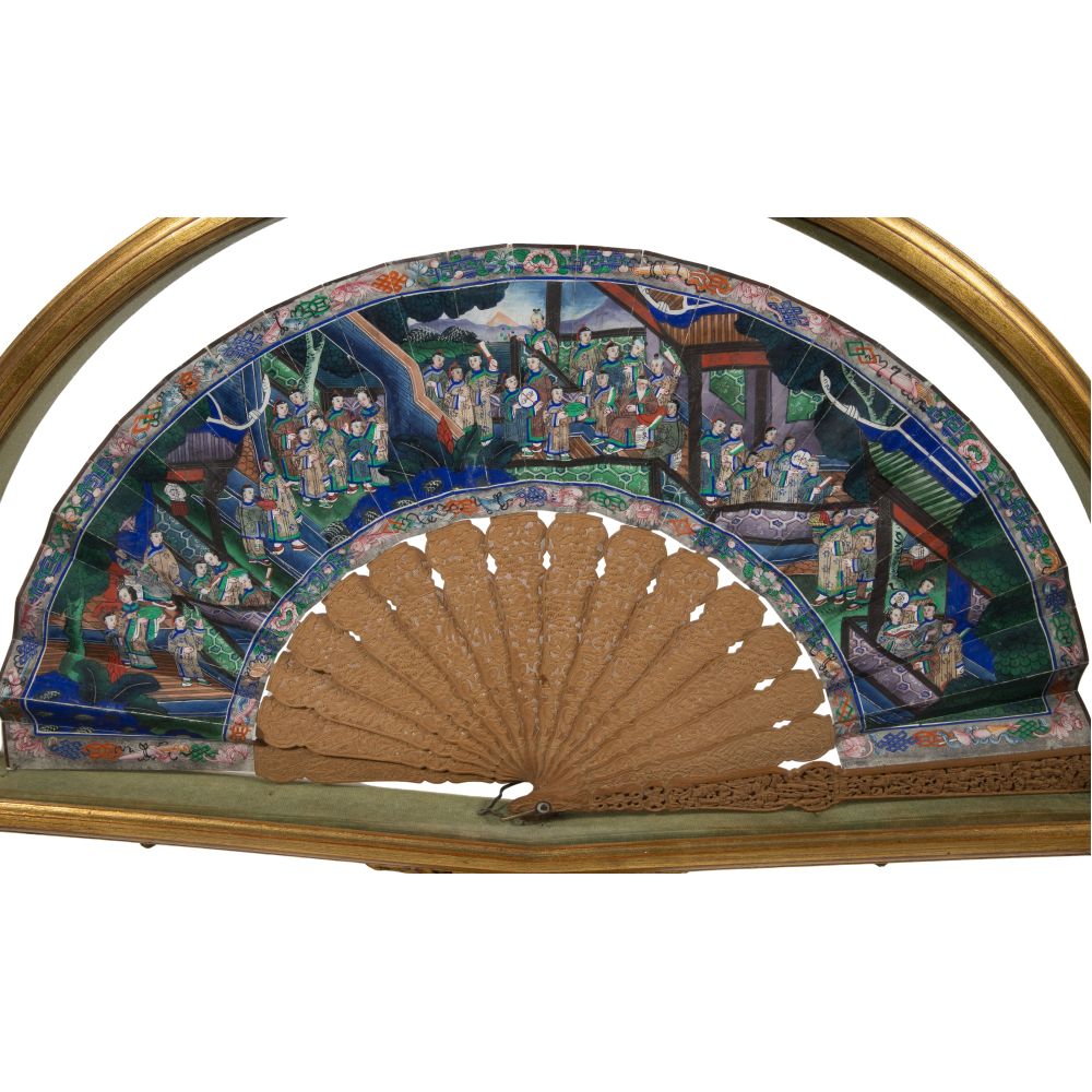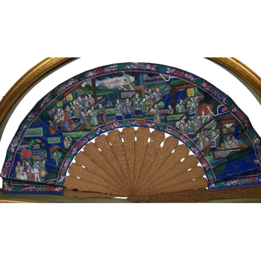 Condition: one jar missing lid, fan having paint loss, creases and chips on frame, rim of dragon vase having chip, one jar missing lid, fan having paint loss, creases and chips on frame, rim of dragon vase having chip