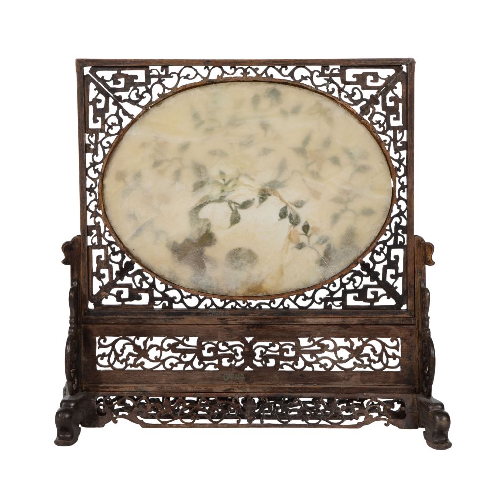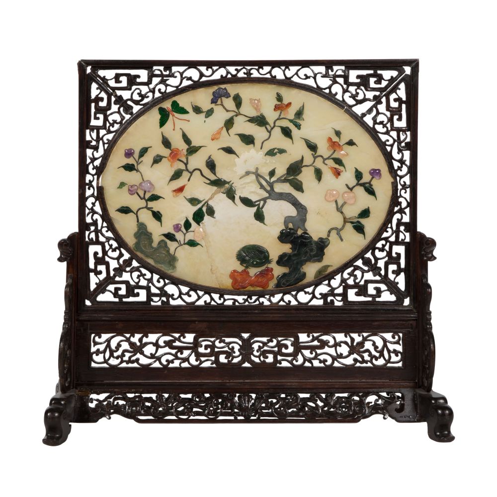 LOT #426 - Asian Wood and Hardstone Table Screen