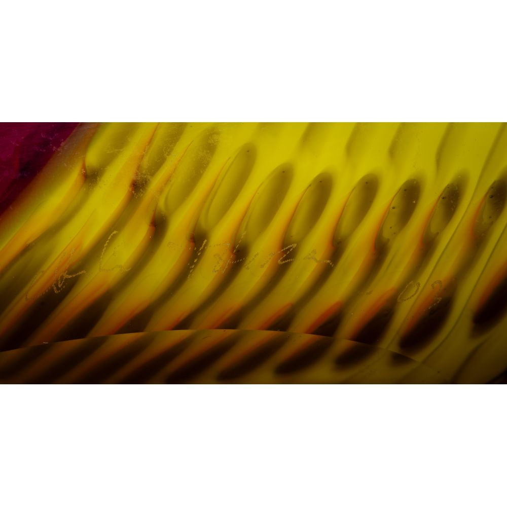 (3) items, undated, unsigned, all of elongated form, including a yellow and red abstract having attached clear glass fin, a cane and dichroic glass and a twisted clear and pastel encasing a cloud of bubbles