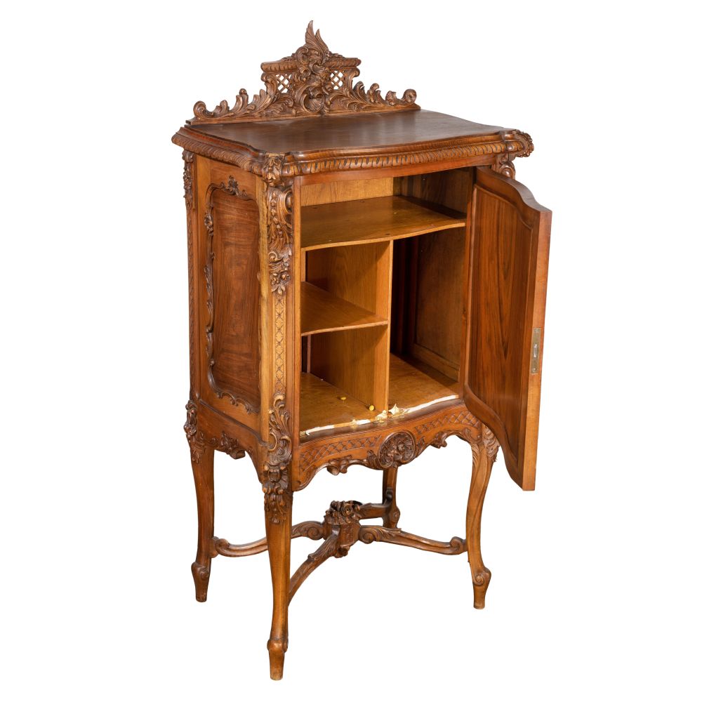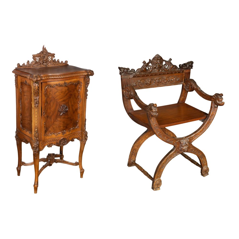 LOT #421 - Carved Walnut Cabinet and Armchair