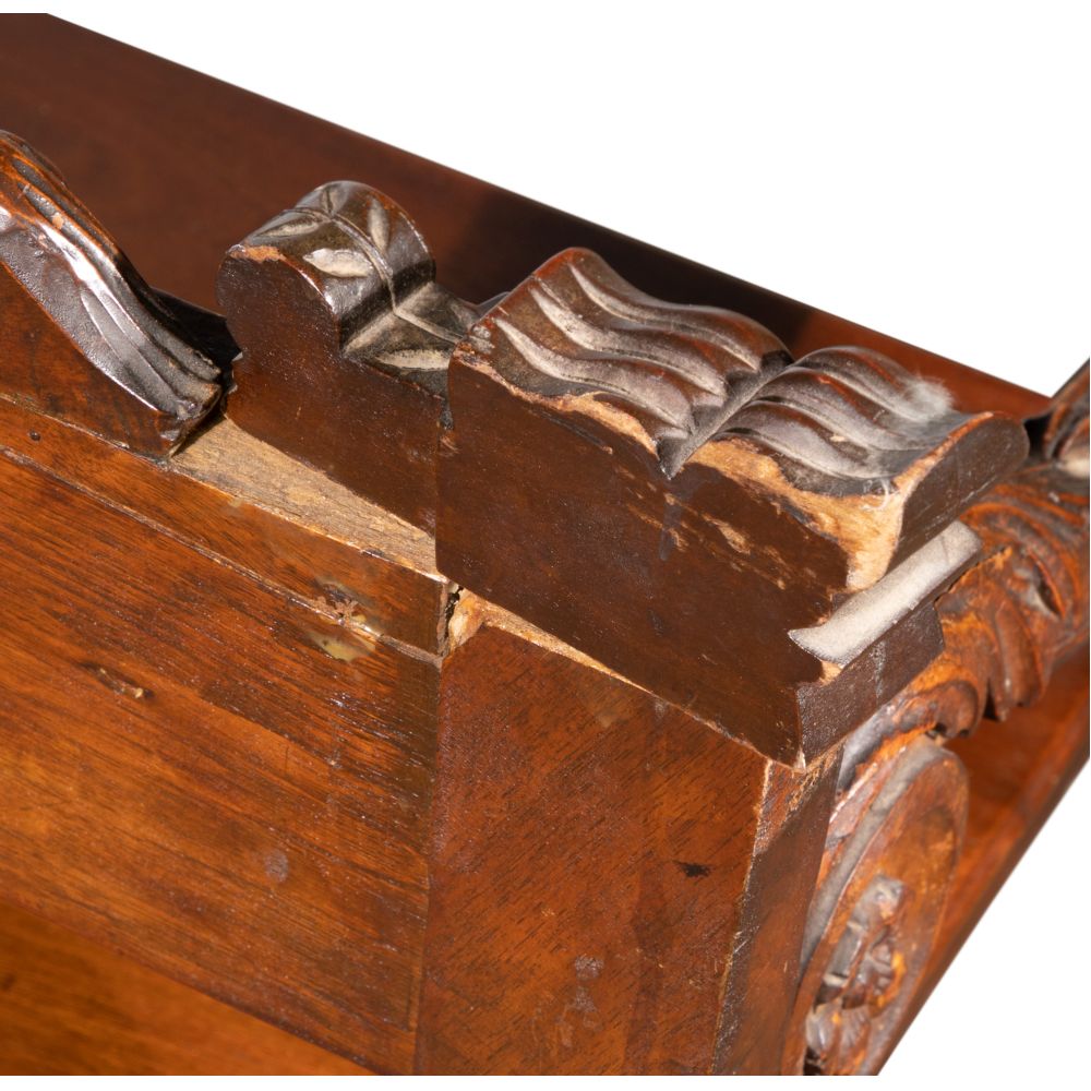 Carved Walnut Cabinet and Armchair