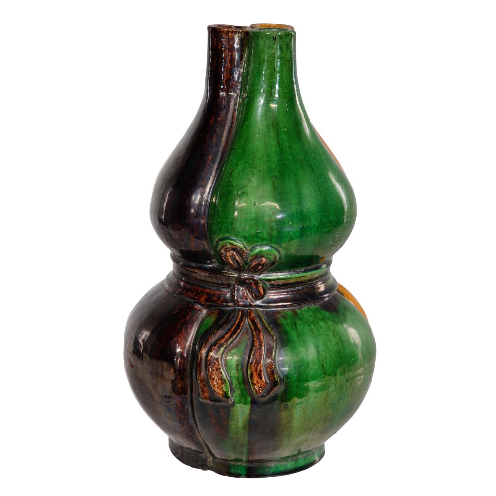 Chinese Triple Spout Double Gourd Ceramic Vase