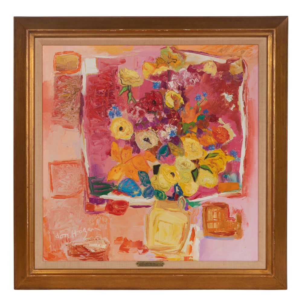 Don Hazen (American, b.1933) "Pink, Yellow and Red" Oil on Canvas