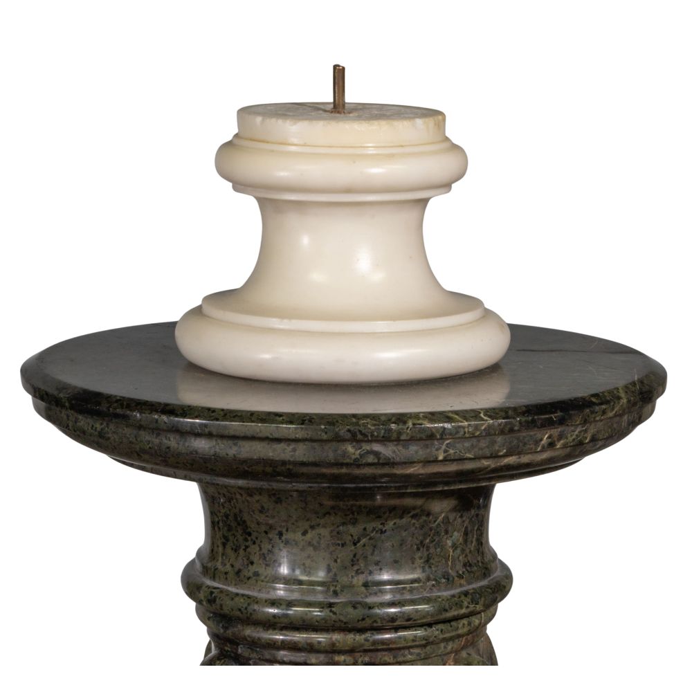 Condition: all items having small chips and cracks, alabaster base attached to top of pedestal, all items having small chips and cracks, alabaster base attached to top of pedestal