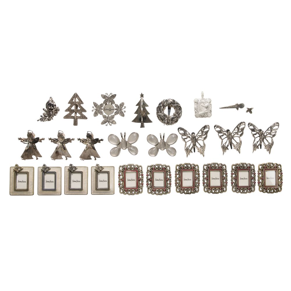 (24) items, mostly clips incorporating a butterfly motif, including (10) miniature picture frames retaining Neiman Marcus printed inserts, a Neiman Marcus butterfly clip, (3) butterfly clips, (2) butterfly pendants, (3) angels having butterfly wings, a wreath having butterfly and (2) Christmas trees (one having attached butterflies), as well as (2) pendants, some having crystals, all marked
