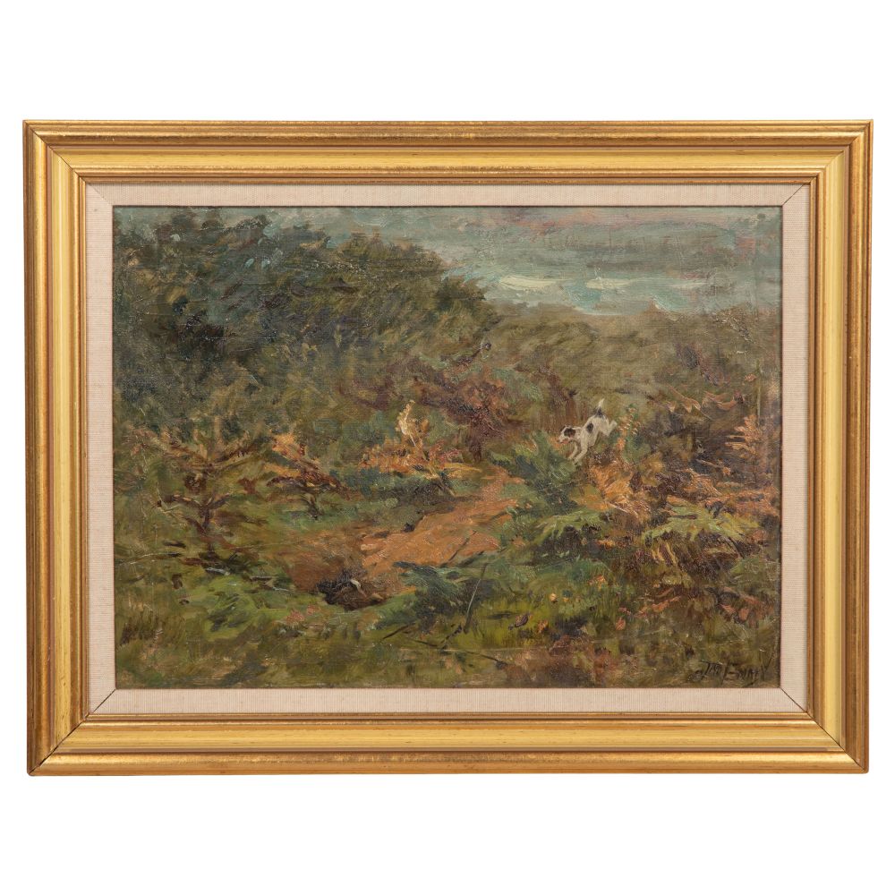LOT #143 - John Emms (English, 1912-1993) “Hare Going to Ground” Oil on Canvas