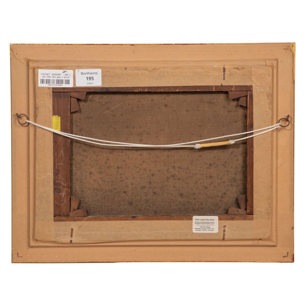 Undated, signed lower right, a hunt scene in a linen-lined gold-tone wood frame having Park Lane Fine Arts, Ashstead, England and Bonhams labels verso