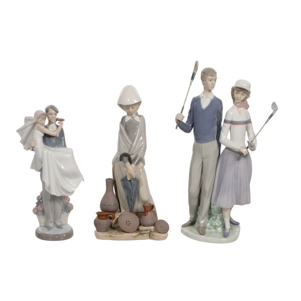 (3) items including #5081 “Ceramic Seller Woman” with box, #5282 “Over the Threshold” with box and #1453 “Golfing Couple”