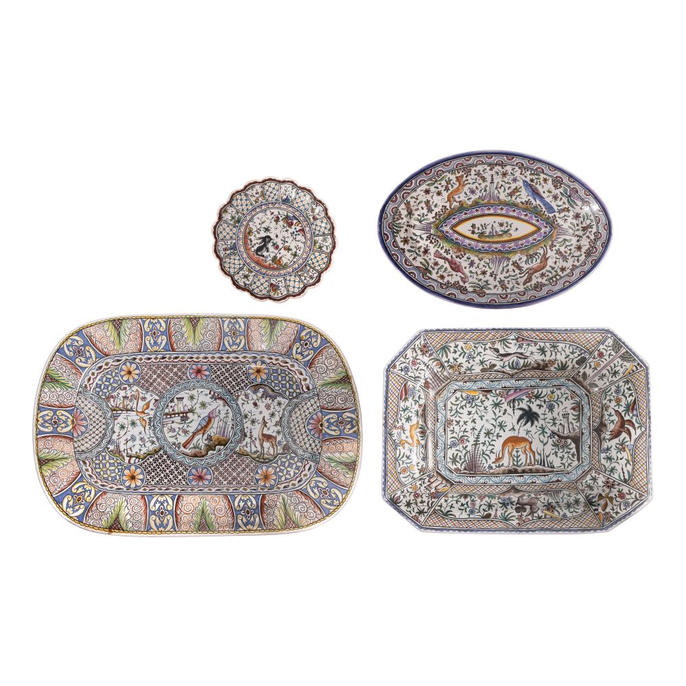 (4) items including (3) trays and a plate, all having floral and animal motif, marked to the underside