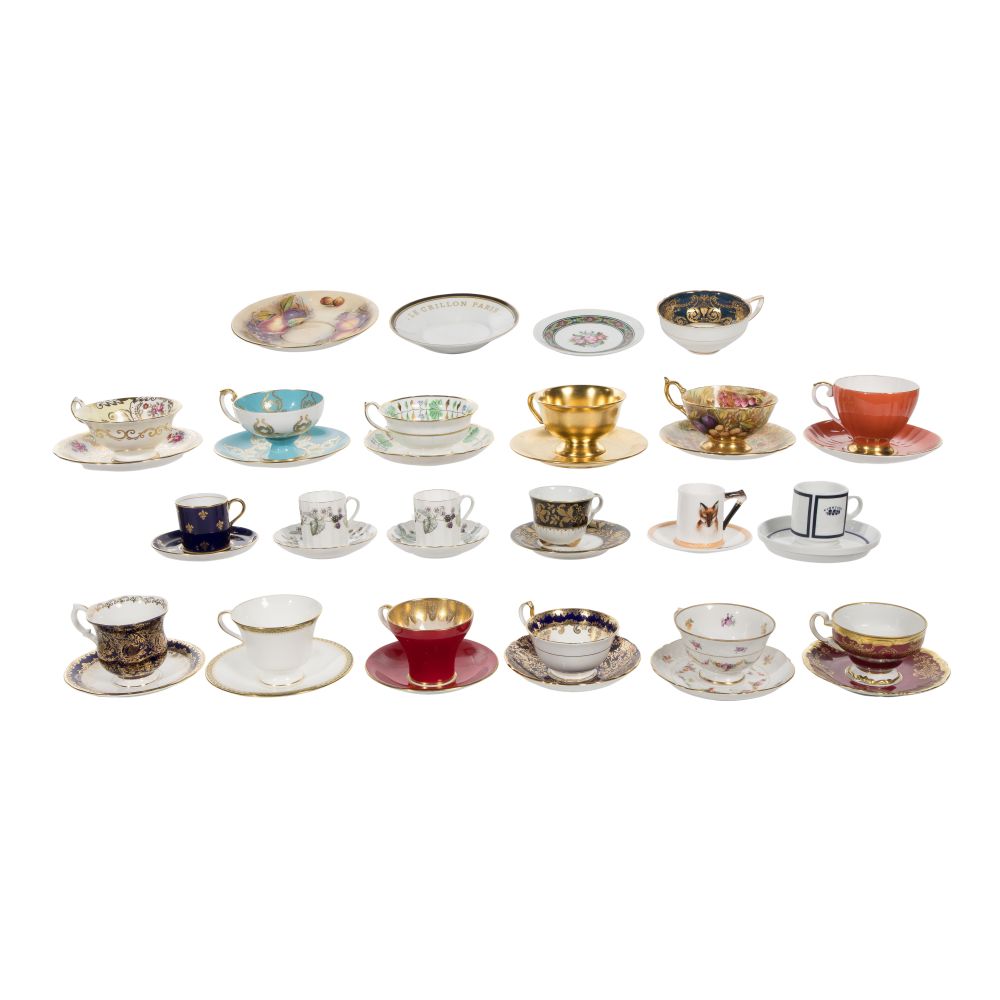 (21) items including (18) matched cup and saucer sets, a single cup and (2) single saucers from makers including Aynsley, Rosenthal, Royal Grafton, Pickard, Tiffany & Co. and Wedgwood
