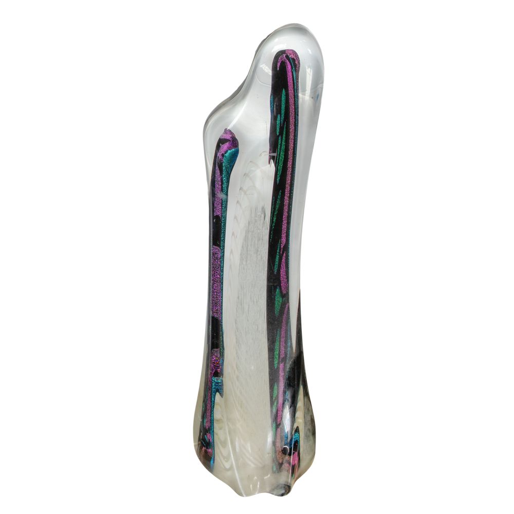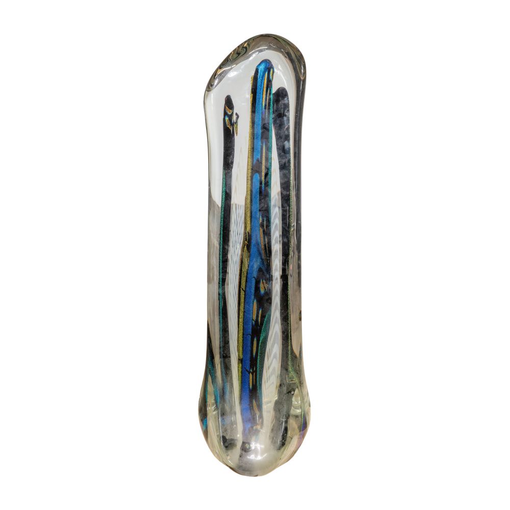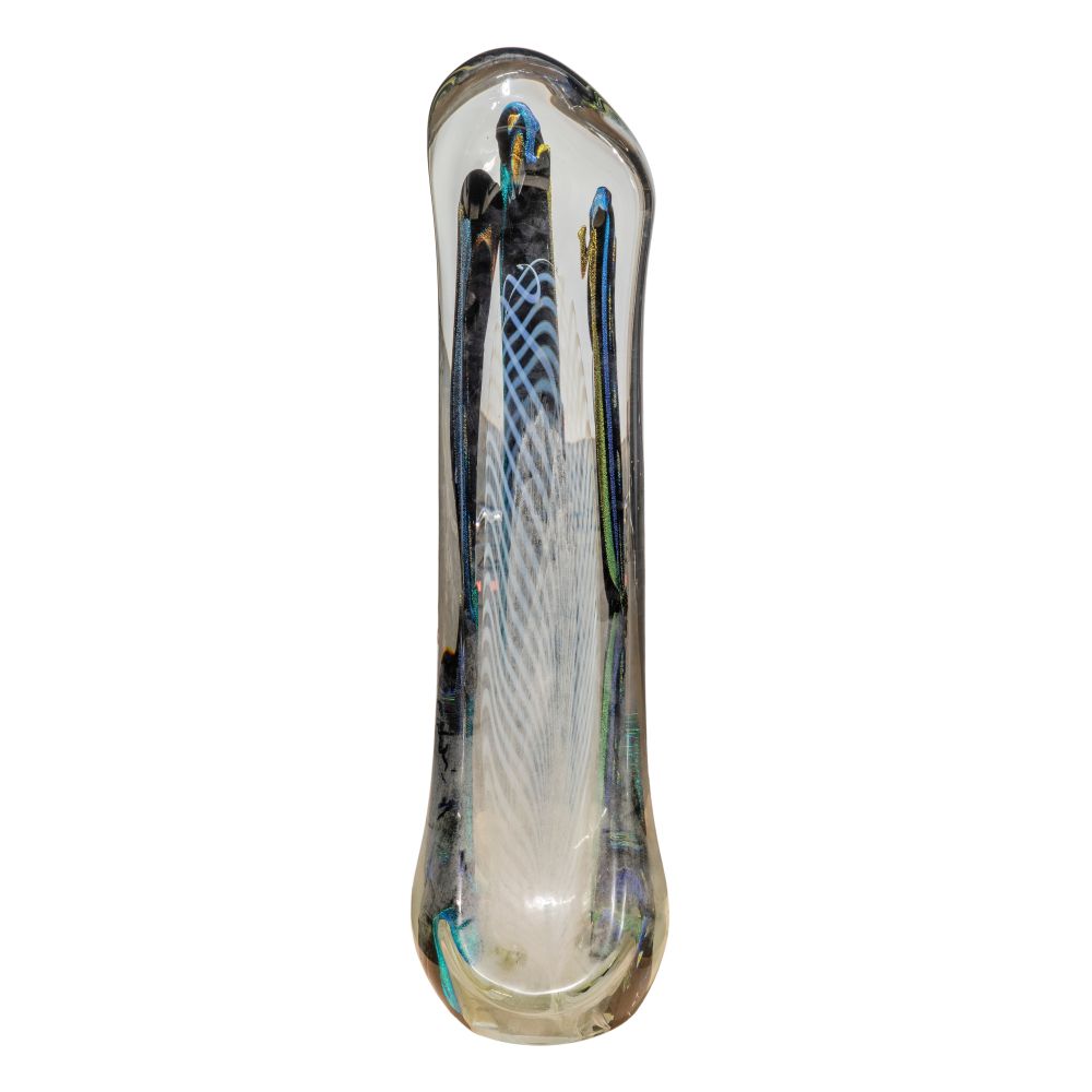 (2) total items including a 2001, signed, elongated and flat free-form sculpture having an interior of millefiori canes and dichroic elements; together with an undated, attributed, elongated free-form sculpture having an abstract interior of millefiori canes and dichroic elements