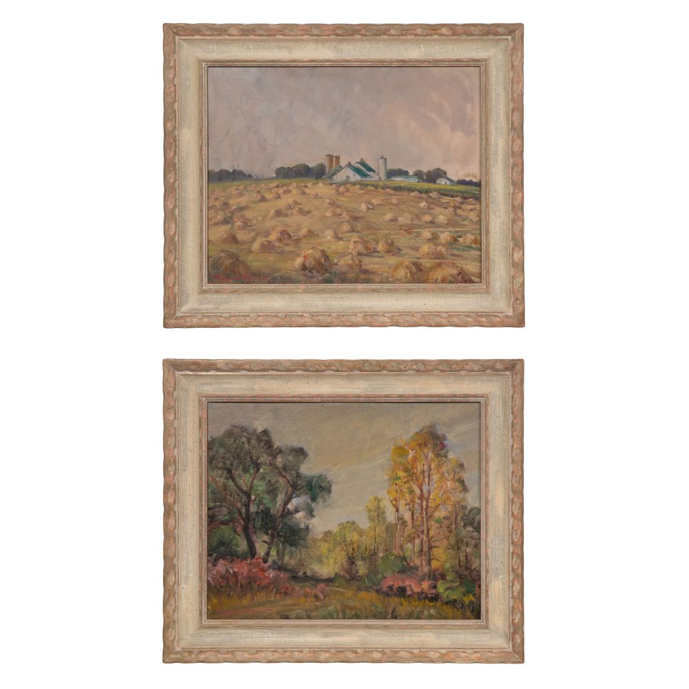 (2) undated items, both signed, including “Harvest Time” and “Sumac Among Trees”, in painted wood frames